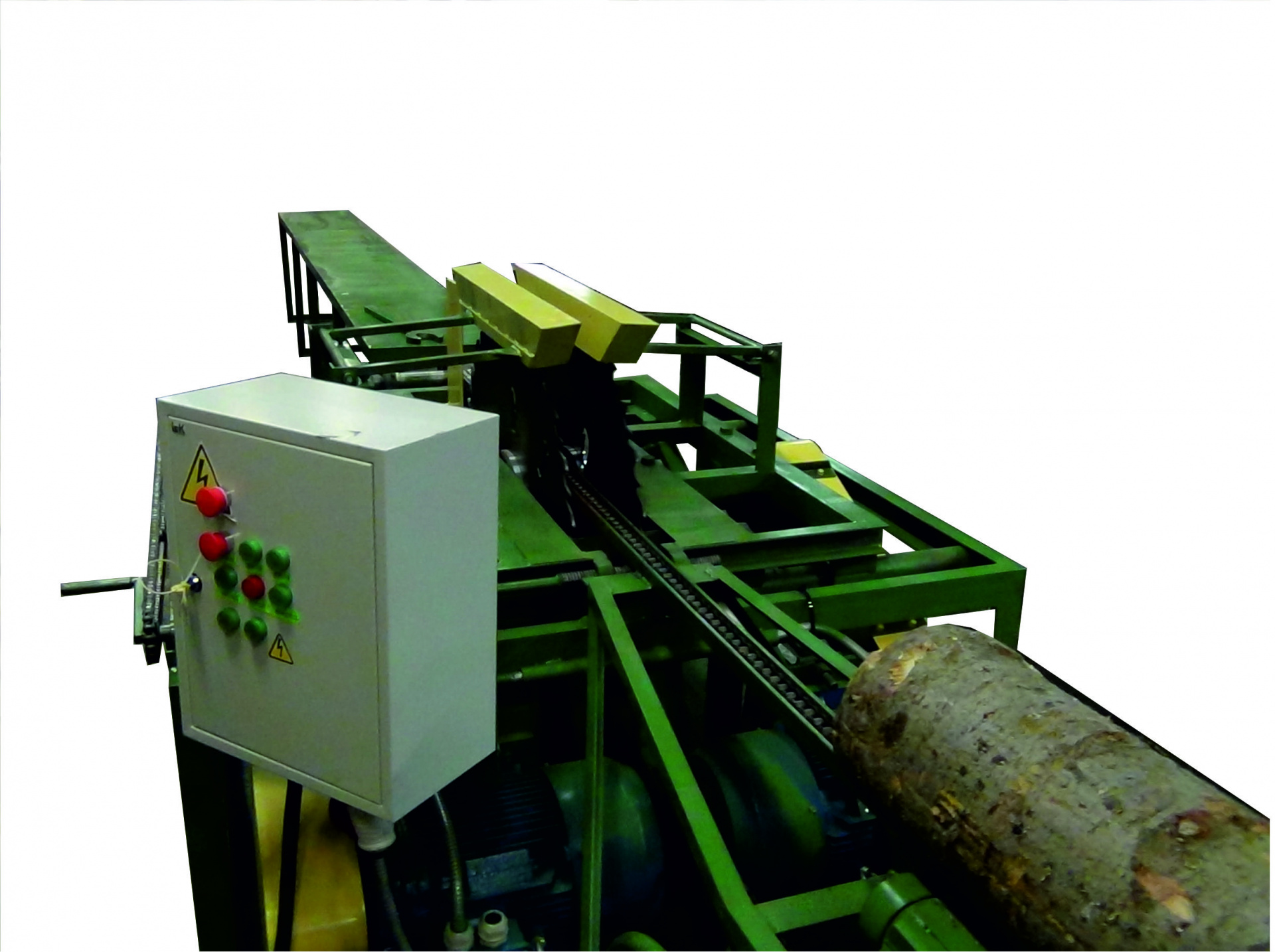 Станок СЛД-2П-1000 должен быть оснащен двумя пилами, что позволяет за один проход получать из бревна один лафет и два горбыля. Данный станок может быть использован самостоятельно или как пилорама первого ряда в составе деревообрабатывающей линии.
