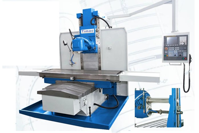 Бесконсольные универсальные фрезерные станки типа BMK716 используют для обработки крупногабаритных деталей торцовыми, а также цилиндрическими, концевыми, дисковыми и фасонными фрезами. Обработку деталей можно производить при движущемся столе и неподвижной фрезерной головке, при неподвижном столе и подачи головки или при одновременно движущимся столе и фрезерной головки. Фрезерная головка вращается в двух плоскостях не зависимо друг от друга на угол 360º, что позволяет вести фрезерование под углом, как в горизонтальном, так и в вертикальном положении фрезерной головы. Перемещение по оси Z шпиндельной бабки осуществляется при помощи противовеса. Бесступенчатая продольная и поперечная подачи. Станина выполнена из серого чугуна по технологии цельного литья. Возможность ручного зажима осей, не участвующих в перемещении позволяет повысить жесткость и снизить вибрации от режущего инструмента. Сервомотор осуществляет подачу осей с возможностью плавного изменения скорости подачи. Специальное приспособление для поддержания режущего инструмента при работе с горизонтальным шпинделем устанавливается на неподвижном основании станины и придает дополнительную жесткость. Подвесной пульт управления позволяет управлять станком перемещая его в нужное место. Станция импульсной смазки осуществляет настраиваемую по времени и периодичности смазку направляющих. Имеет сигнализацию о понижении уровня масла в баке.