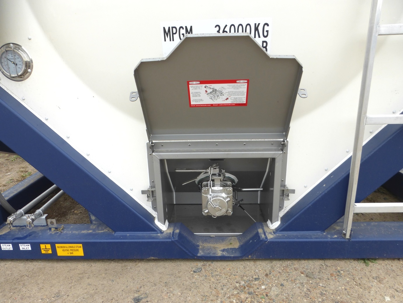 | Нижнее устройство слива (налива) груза (производитель Fort Vale) | Последовательно установленные внутренний 3” 45° донный клапан и 3” зажимной поворотный кран (наружный клапан) и выходной патрубок с резьбой 3"BSP и резьбовой крышкой. |