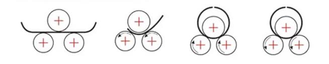 Из листовой заготовки можно свернуть цилиндр подавая листовую заготовку через валки, в одну установку, включая предварительный изгиб обоих концов заготовки.