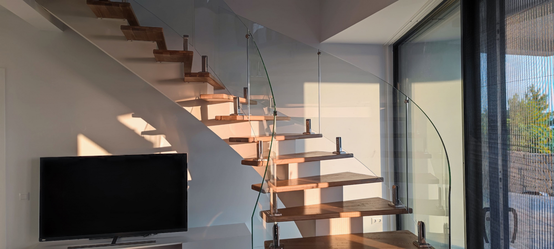 Профессиональные специалисты компании делают все для того, чтобы заказчики остались довольны полученным результатом. Они делают все работы на профессиональном уровне, точно соблюдая срок производства, который не превышает 3-х месяцев. В итоге следует выделить, что в компании можно получить квалифицированную консультацию и узнать все, что относится к производству и монтажу полувинтовых лестниц со стеклянным изогнутым ограждением!