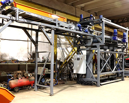 Укладчик мешков на паллеты ПАЛ-20 предназначен для автоматической укладки готовых сеток на паллеты. Работает с производительностью до 24 тонн в час на мешках весом 25 кг. И до 48 тонн в час при весе 50 кг.
