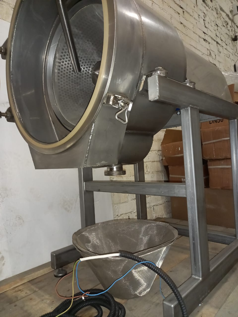 Фильтрующая перегородка - полимерная ткань либо нержавеющая сетка. Все части центрифуги изготовлены из нержавеющей стали.