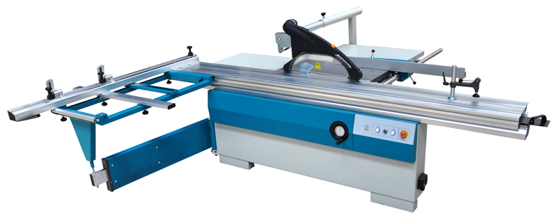 Форматно-раскроечный станок с наклоняемой пилой и подвижной кареткой на роликовых направляющих.