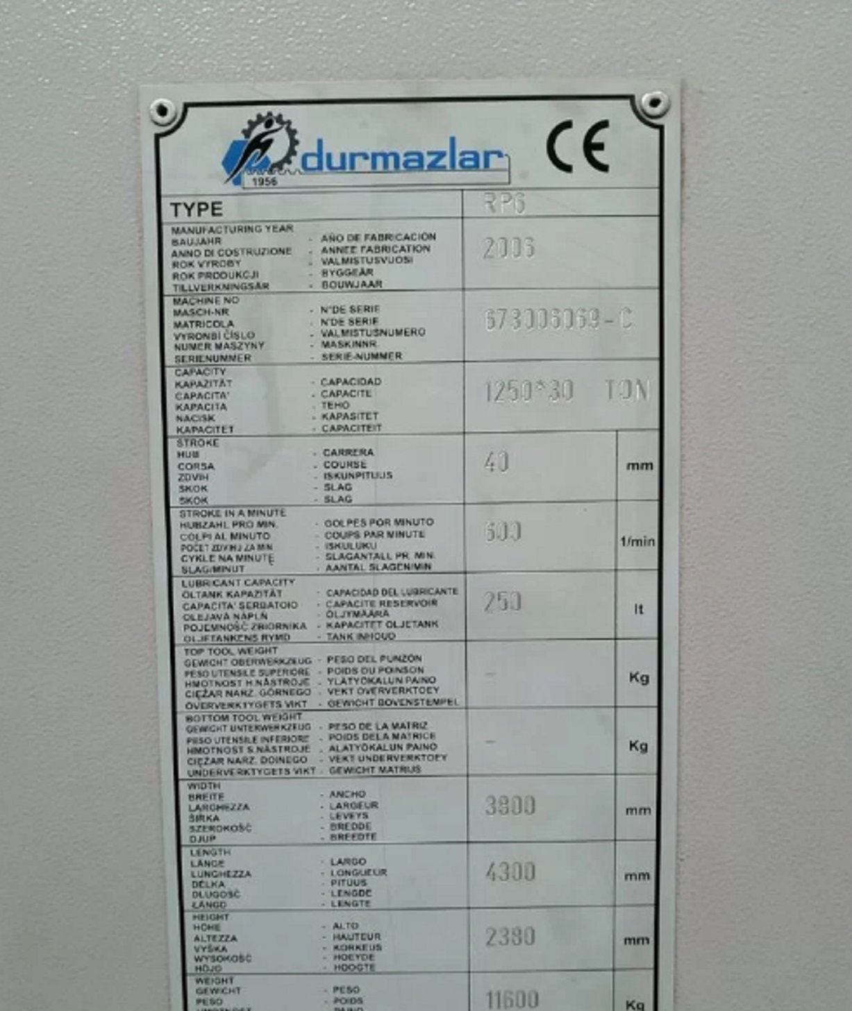 Предприятие реализует пресс координатно-пробивной DURMA (Турция).