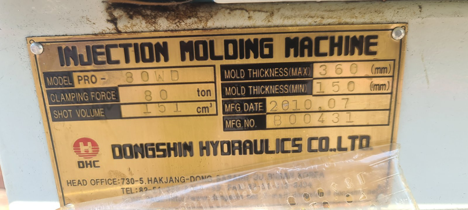 Термопластавтомат, б/у, 2010 год выпуска, в рабочем состоянии. Продается без периферийного оборудования Производитель: Dongshin, Южная Корея.