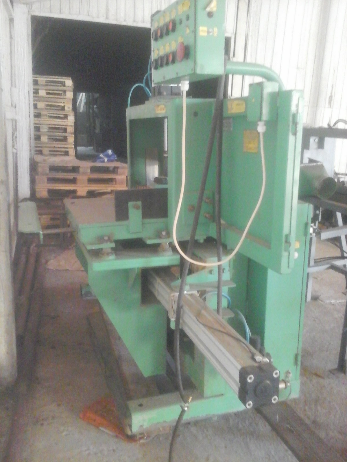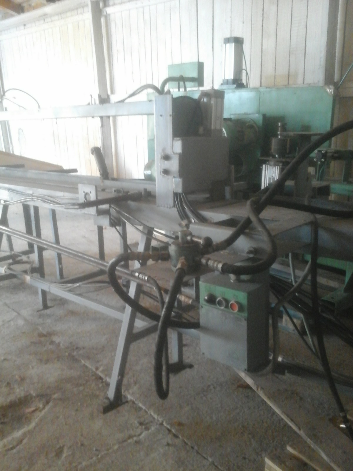 Пресс стыковочный ПС 3200. Полуавтомат- воздух. Длина набора 3200 мм. 2006 г.в. -Станок шипорезный ШС600-М1, 2005 г.в. В отличном техническом состоянии. Работал очень мало, состояние нового. Вместе с комплектом веерных фрез BLACSMITH. Высота набора 150 мм. Шипорезный станок ШС600-М1 предназначен для нарезания минишипа с предварительной торцовкой.