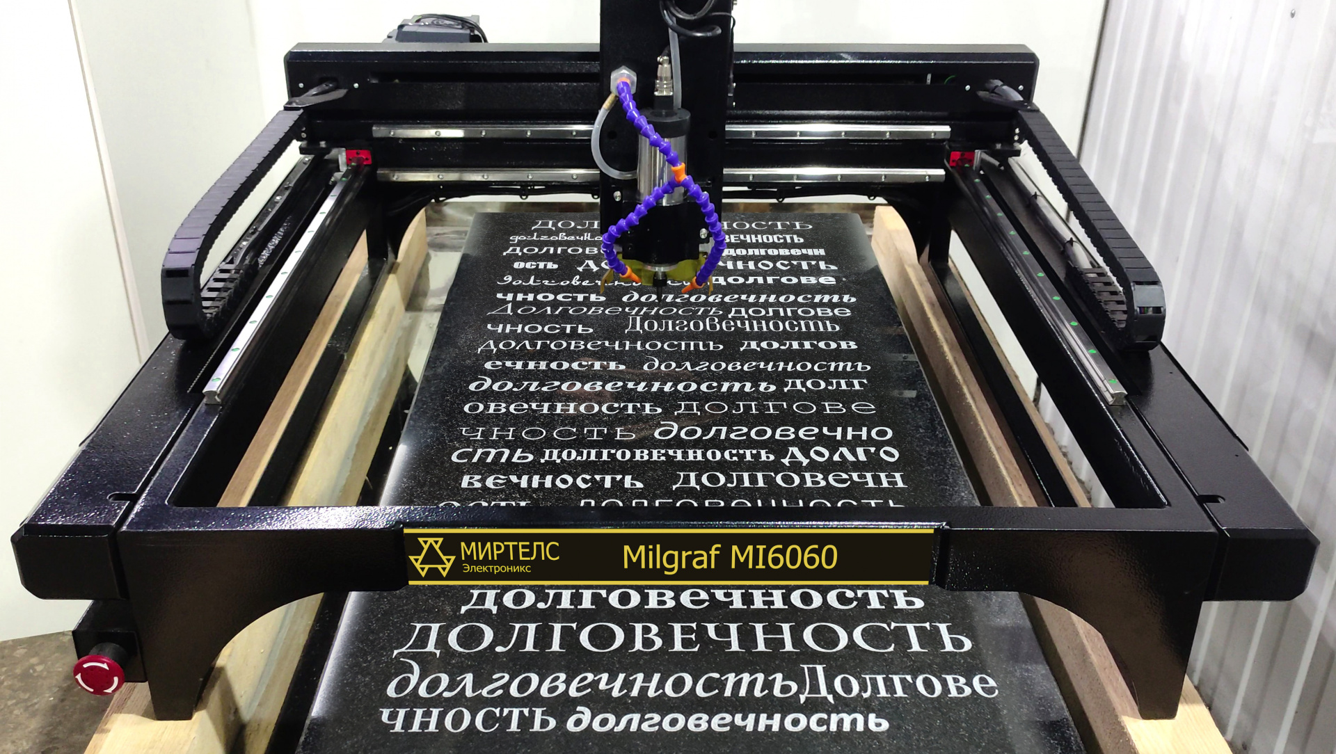 Фрезерный станок по камню с ЧПУ Милграф - это специализированный фрезер для эспресс нанесения глубоких надписей на каменные плиты.