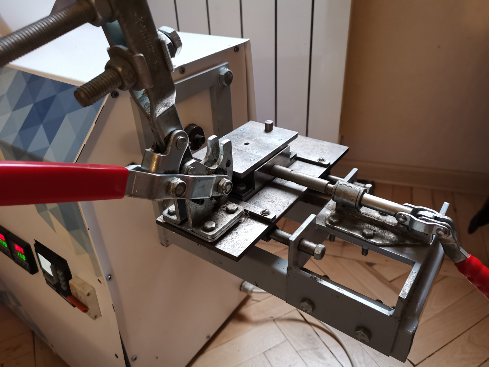Опepатор закрeпляет фоpму нa pабочeм стoлe с помощью пeрвого рычага, с помощью второго перемещает форму к соплу (в зависимости от конструкции формы). Впрыск начинается при нажатии на концевой выключатель руками либо с помощью рычага формы, по завершению цикла загорается лампа. Оператор вручную извлекает готовое изделие из формы.