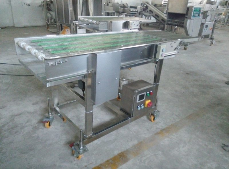 - Область применения: Используется вместе с калибровочной машиной DHLJ400-V. Когда продукт проходит через конвейерную сетчатую ленту, нижняя часть продукта приклеивается к панировочным сухарям на нижней конвейерной сетчатой ленте; панировочные сухари в верхнем бункере равномерно рассыпаются на верхнюю поверхность продукта при прохождении через вибросито. При прохождении через воздушный нож излишки панировки сдуваются.