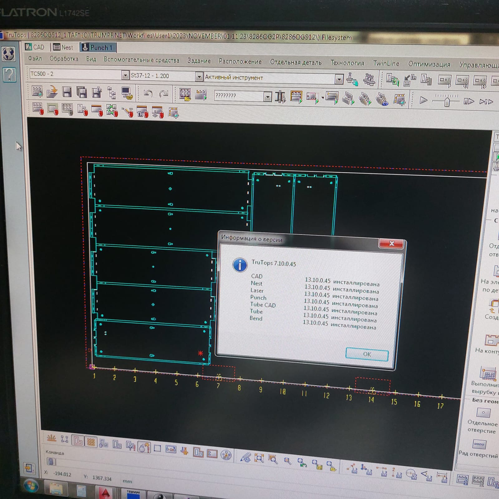 ТО – проводилось согласно рекомендациям производителя. Последнее обслуживание 05.05.2023 - произведена калибровка зажимов матрицы и пуансонов, замена гидравлического масла, замена масла в редукторах осей Х, У.