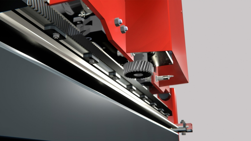 14. Высокоточная косозубая зубчатая рейка обеспечивает отличную точность позиционирования и минимизирует люфты в узле перемещения портала по столу.
