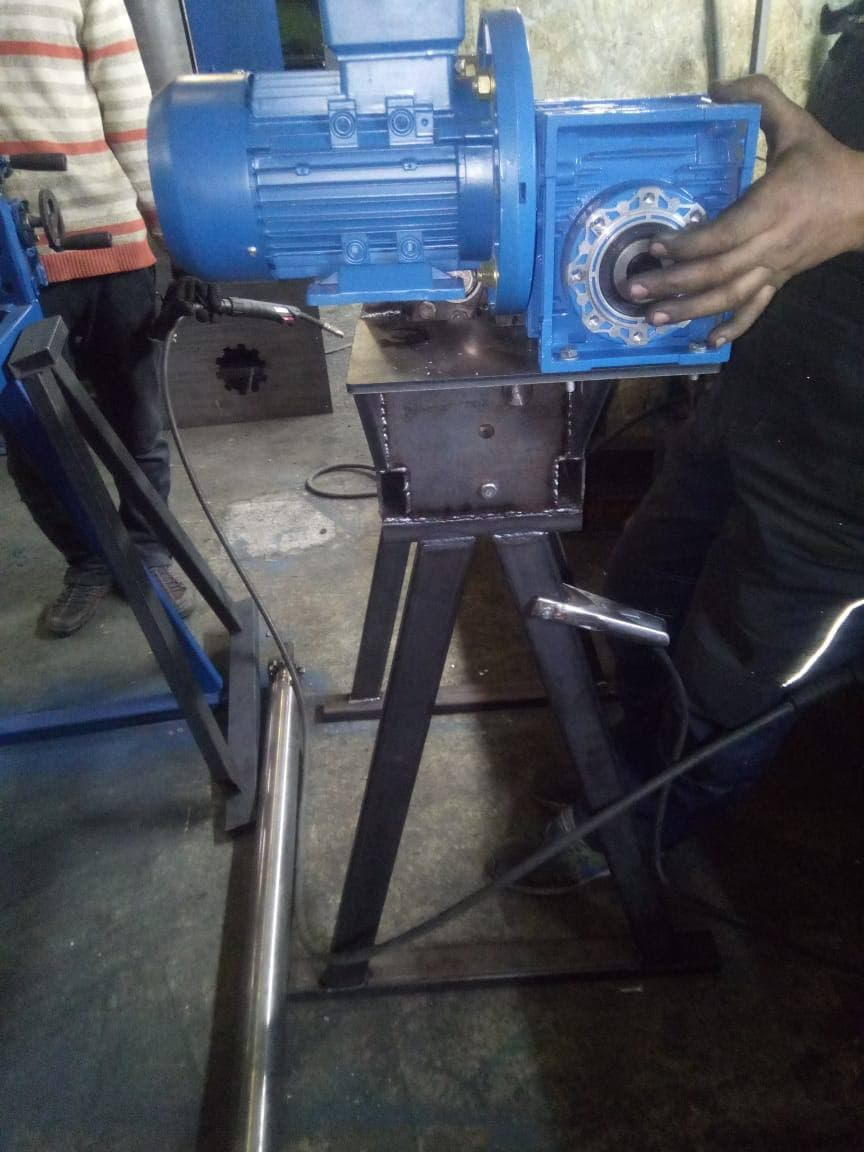 - Вращение верхнего и нижнего валов посредством комбинированной шестерёнчатой передачи и червячного мотор-редуктора.