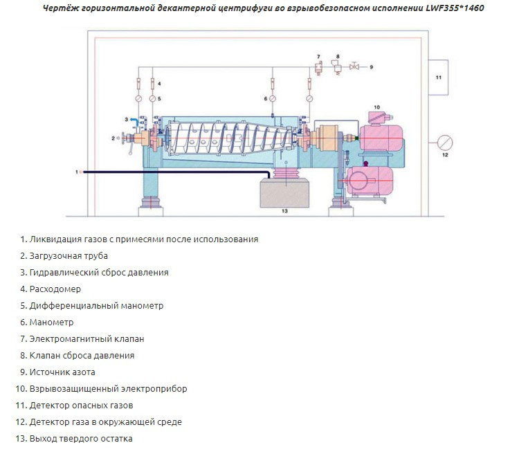 Горизонтальную декантерную центрифугу во взрывобезопасном исполнении LWF530*2120