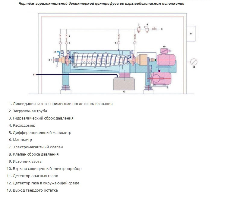 Горизонтальную декантерную центрифугу во взрывобезопасном исполнении LWF530*2120