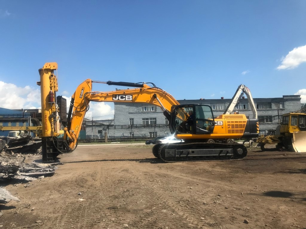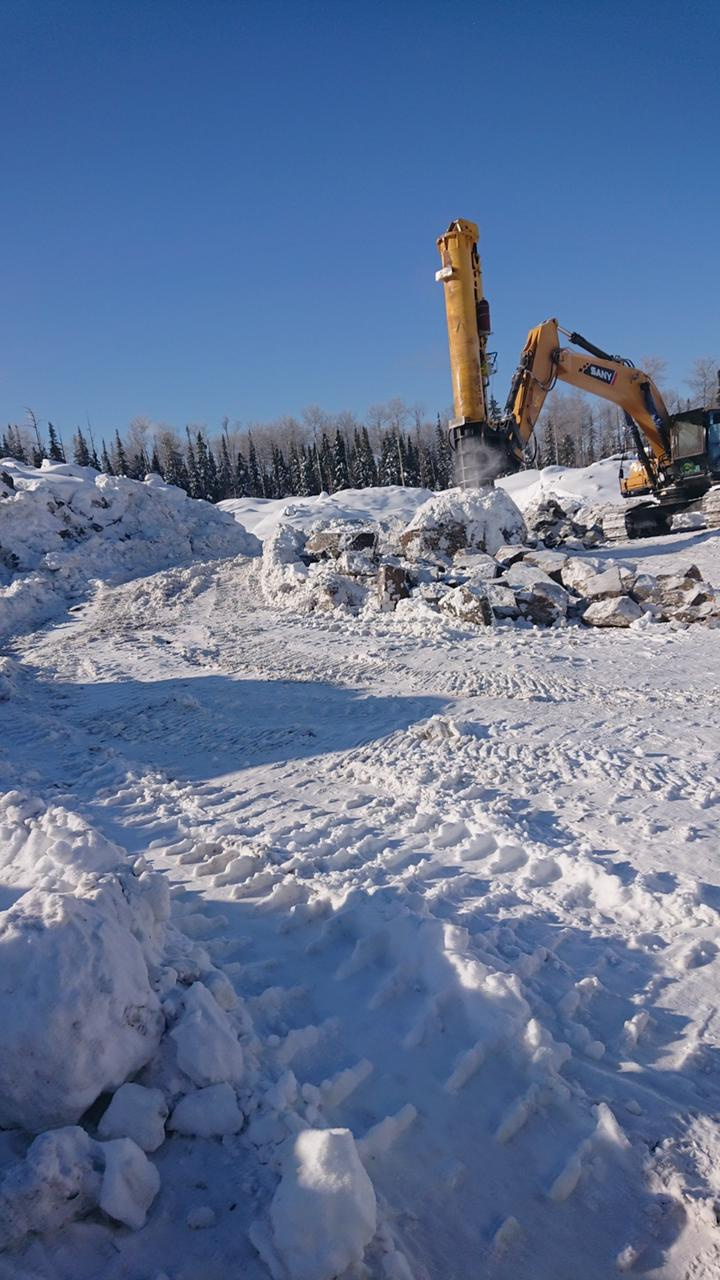 Аренда молота- разрушителя Pilemaster H100. Служит для разрушения негабарита, бута, скалы, камня, железобетона, козелков, металлургических шлаков.