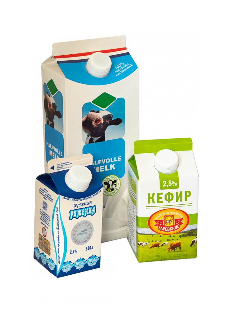 Ассортимент фасуемой продукции в пюр пак: молоко, сливки, кефир, ряженка, сметана, йогурты с кусочками фруктов, соки, вина.