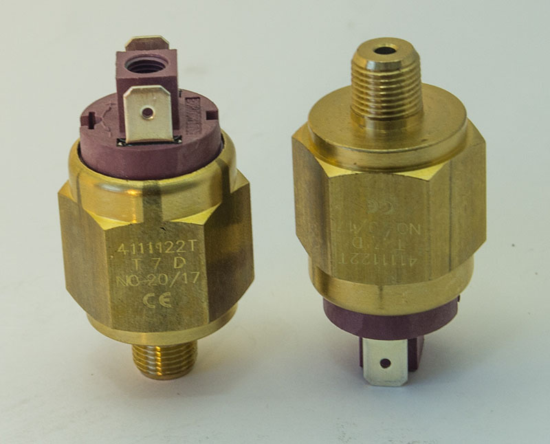 4111122 - Реле давления NO – разомкнутые (Т 1-10), 1/8" BSPT газ. конич., мембрана FKM, 0,5А/48V, корпус из латуни.