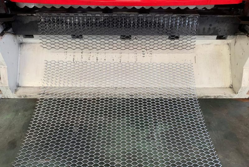 Станок для производства просечно вытяжной сетки PV-2000 позволяет проводить просечку и последующую вытяжку стальных листов при производстве стальной сетки с ромбическими ячейками.
