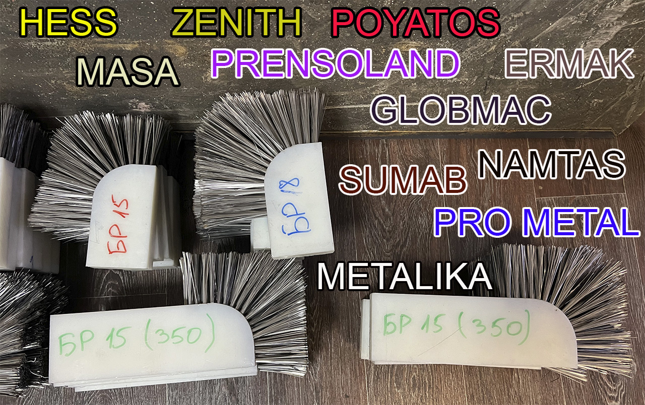 Наш ассортимент включает в себя щетки для очистки пуансон бортовых камней (Бр. 1000.300.150, Бр 1000.300.180), предназначенные для очистки пуансонов вибропрессов, производимых такими компаниями, как: