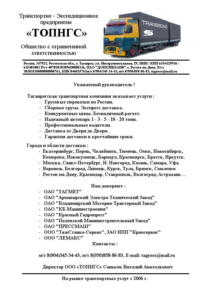 Всегда в наличии свободный транспорт из Таганрога (Ростова-на-Дону) :