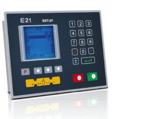 - Станок оснащен контроллером Estun E21. Управление по оси X осуществляется программно контроллером, либо в ручном режиме, за что отвечает привод на базе мотор-редуктора с обратной связью и высокоточной ШВП с направляющими. Непосредственное управление приводом по осям производится частотным преобразователем.