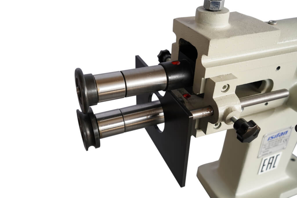 Валы изготовлены из специальной стали и не деформируются в течение долгого времени, что гарантирует качественную прокатку заготовок на всем сроке службы. Прижим листа осуществляется вручную при помощи вращения рукоятки, которая расположена в верхней части станка.