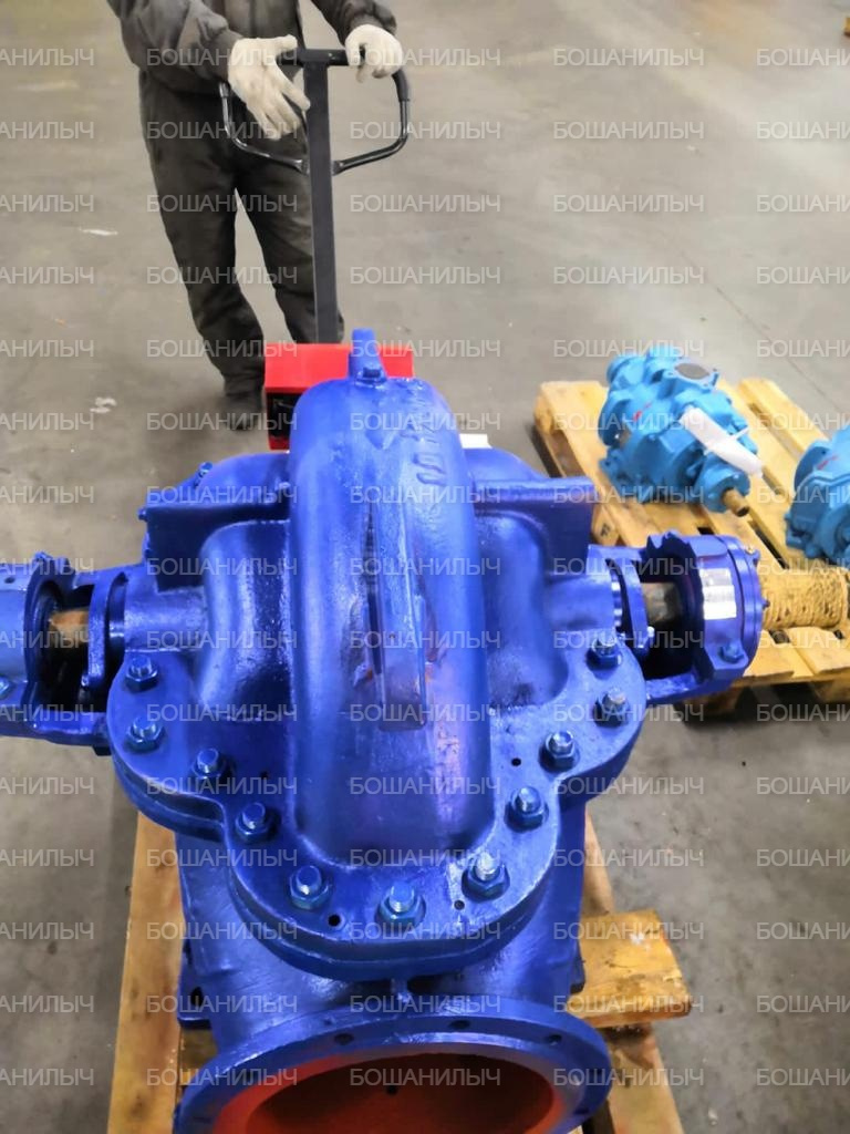 Всасывающий и нагнетательный патрубки насоса расположены в нижней половине корпуса и направлены в разные стороны, благодаря чему возможна разборка и ремонт насоса без отсоединения трубопроводов и снятия электродвигателя.
