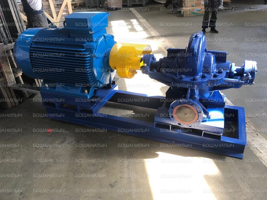 Насос комплектуется с двигателями от 55 кВт до 250 кВт, в зависимости от подрезки рабочего колеса