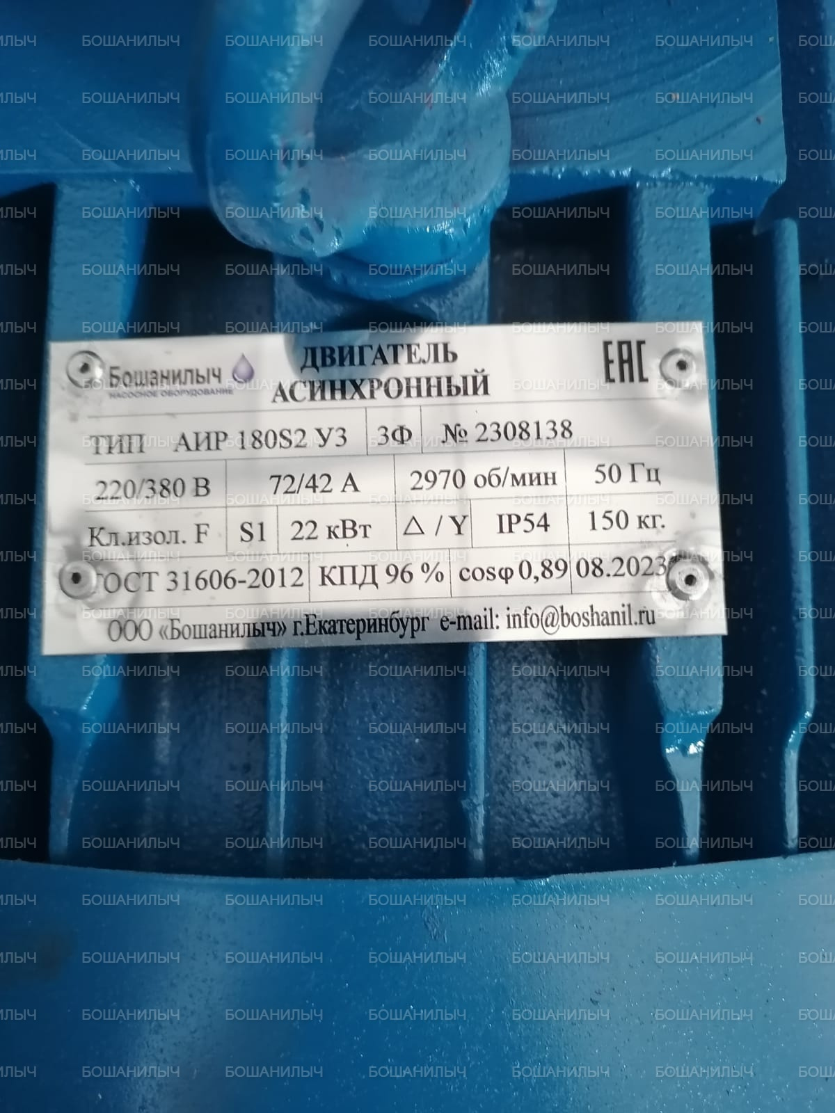 Насос комплектуется с двигателями: 18,5 кВт, 22,0 кВт, 30,0 кВт (в зависимости от подрезки рабочего колеса)