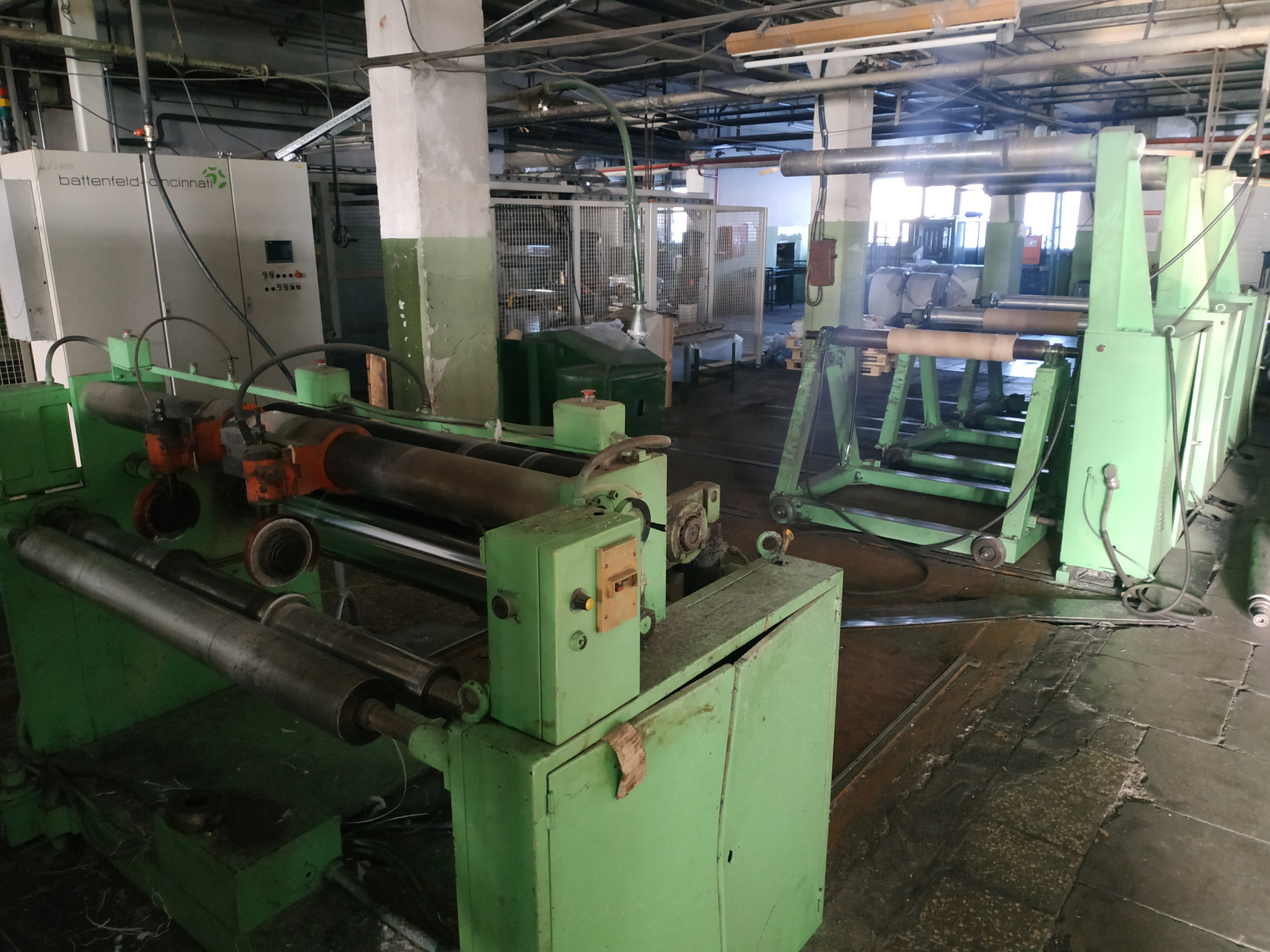 Коэкструзионная линия D100/120, производства OMV, Италия, заводской номер 00265, 1983 года выпуска, Производительность: 700 кг/час, Потребляемая мощность: 609 кВт, Габариты: 2550*22000*2200 мм. 2-е линии. 3 cлоя, плюс 1слой (2268/53) Итого 4 слоя.
