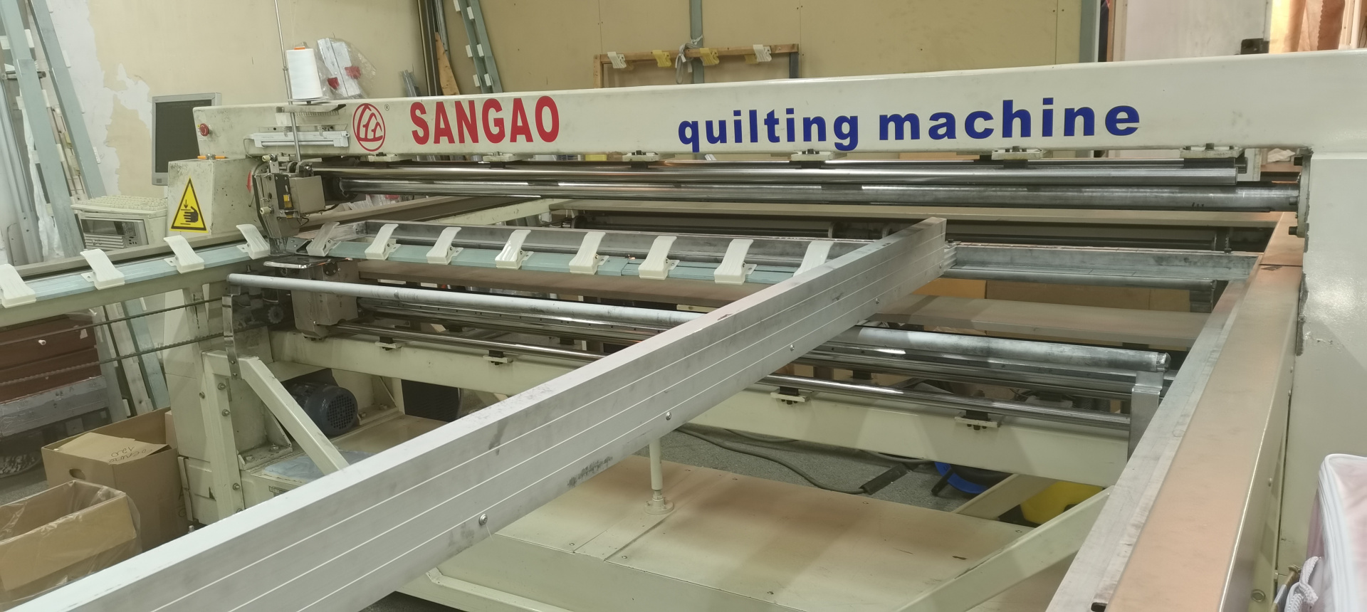 Продам промышленную компьютерную многофункциональную стёгальную одноигольную машину. Подходит для стёжки одеял с наполнителем любого размера, стёжки чехлов для пуховых одеял, стёжки покрывал и полотен. В комплект входит машина в разобранном виде (готова к погрузке), комплект рамок, стол и инструкция.