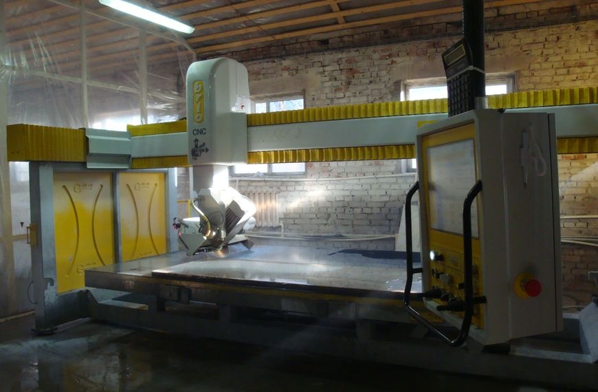 Оснащен ПО для резки и профилирования пилой в 5 осях, подъемным резиновым столом