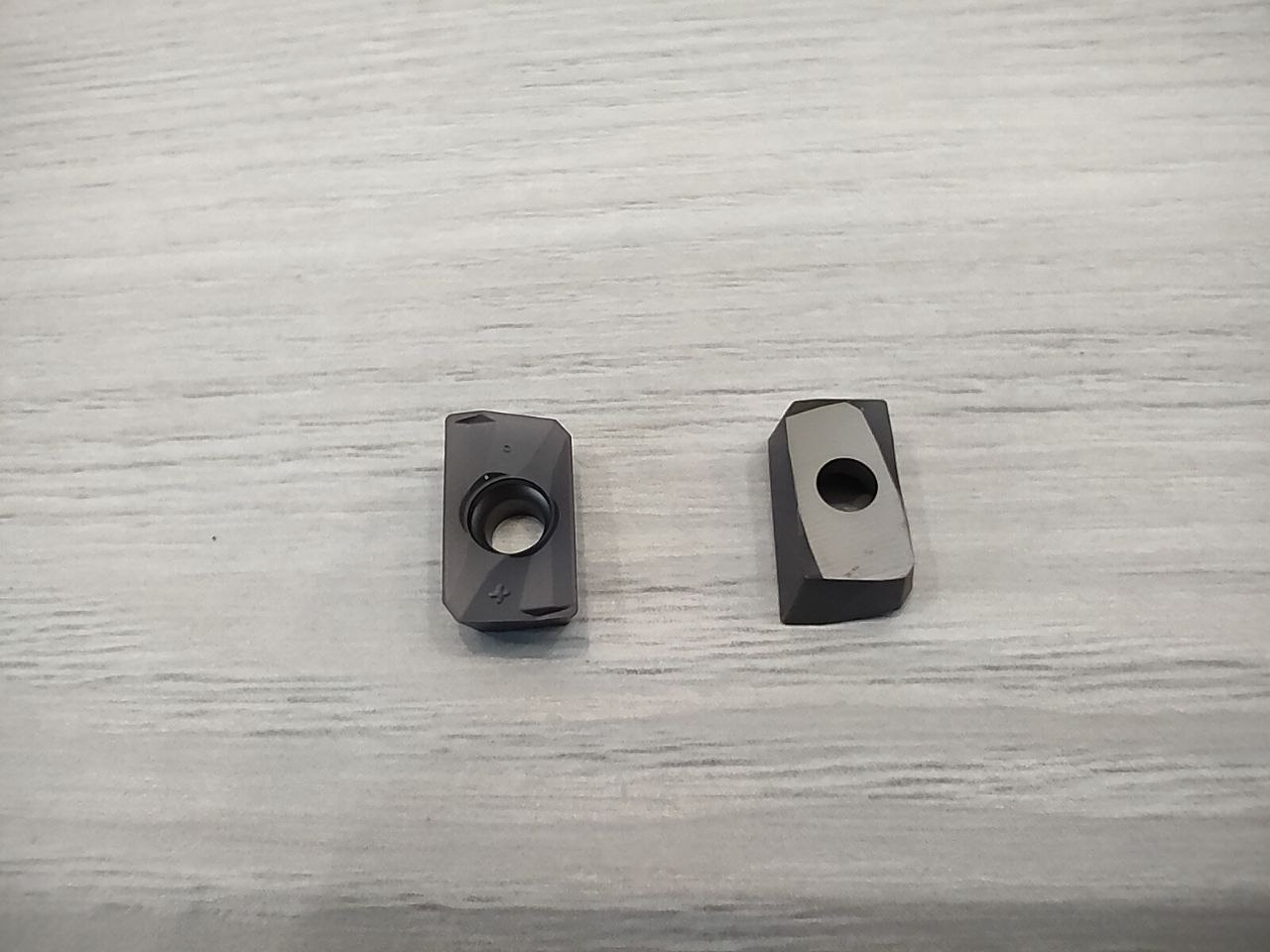Пластина фрезерная твёрдосплавная для корпусных фрез типоразмера APMT 1135 с радиусом на вершинах 0.4мм для фрезеровки нержавеющих и обычных сталей. Модель покрыта износостойким покрытием третьего поколения с температурой стойкости 1000 градусов.