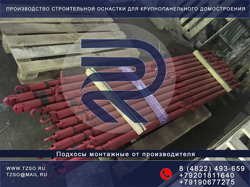 Завод строительной оснастки предлагает различные типы подкосов для монтажа железобетонных панелей, включая телескопические подкосы, регулируемые подкосы, двухсторонние подкосы и многое другое.
