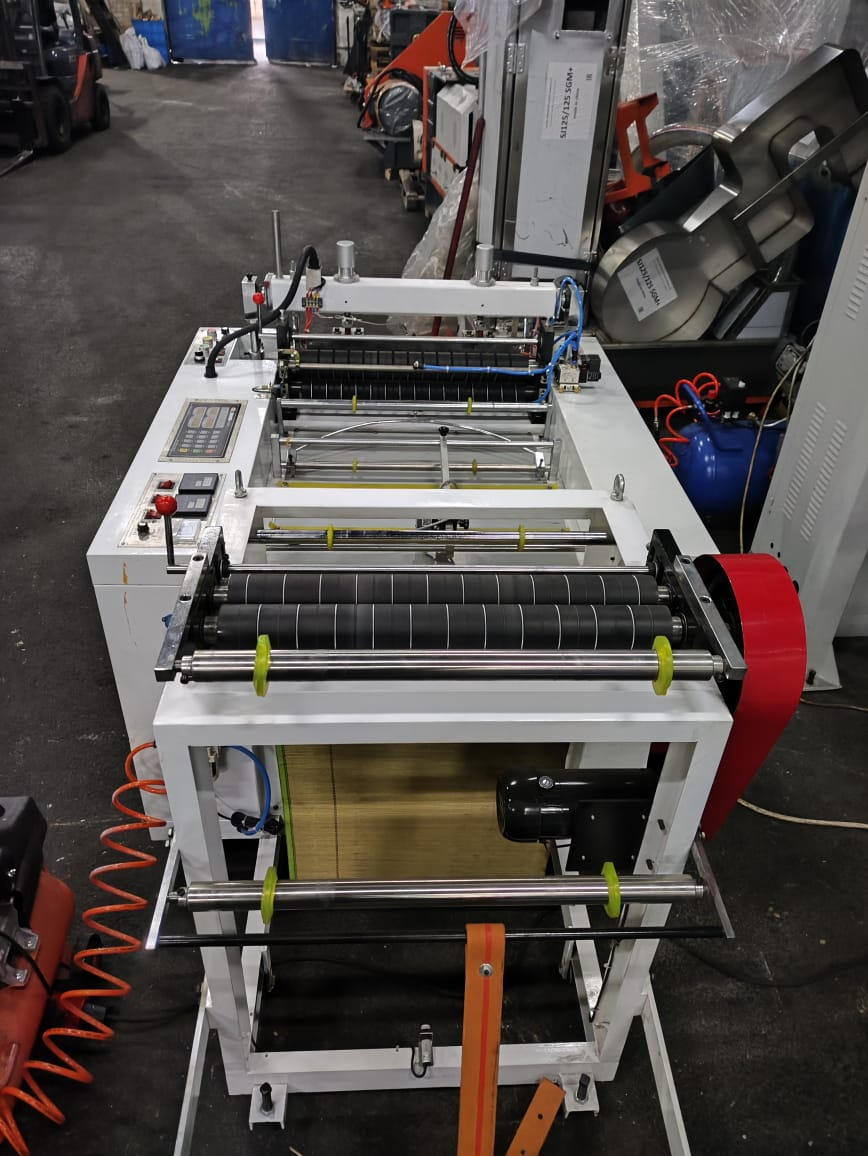Предназначена для изготовления пакетов типа "майка". Машина автоматическая и оснащена: сервоприводом, рамкой антистатики, фотоглазом, счетчиком пакетов. Основные технические характеристики: Модель DFR-600 Ширина материала, мм 600 Длина резки, мм 100-1000 Толщина материала, мм 0.005-0.50 Производительность, шт/мин 40-120 40-120 Мощность основного двигателя, кВт 1.1 Мощность нагревателей, кВт 2.4 Общая мощность, кВт 3.8 Масса, кг 900 Габаритные размеры (ДхШхВ), мм 2600х1300х1500"