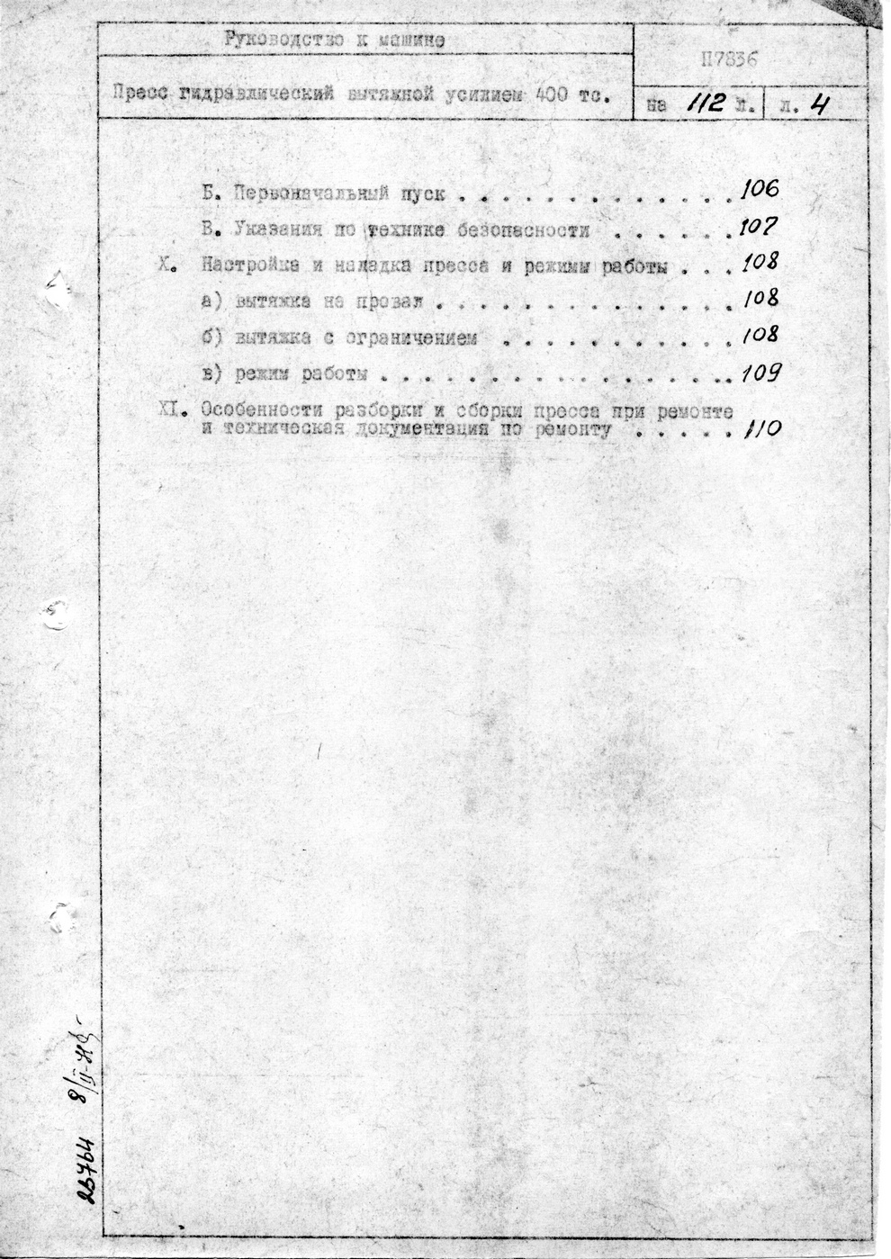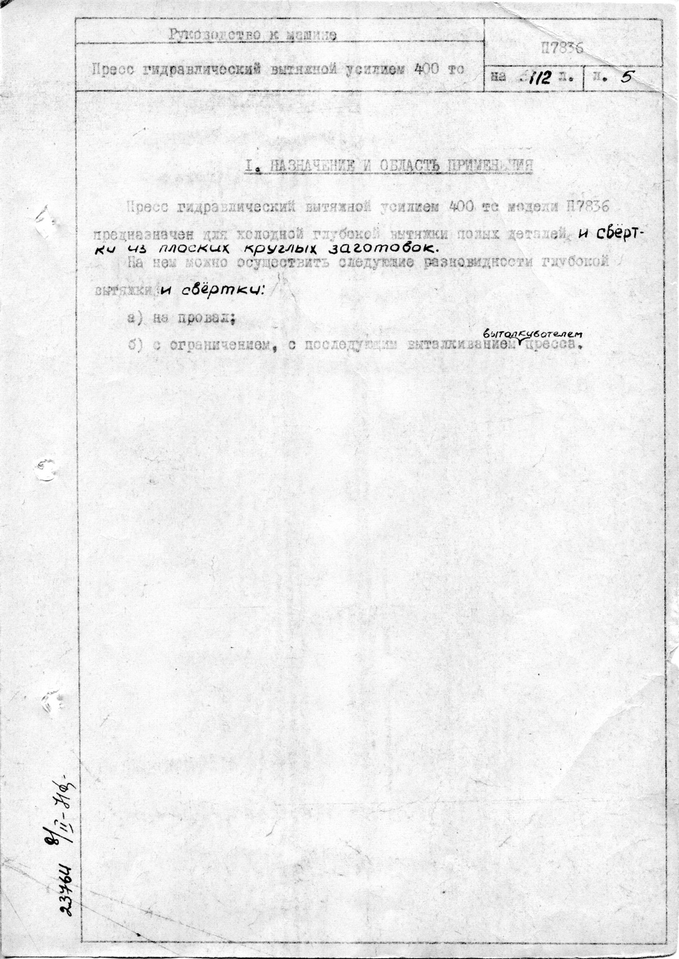 Паспорт пресса П7836 гидравлического вытяжного 400 тс (ход 1800 мм) Б/У - Продам в Новосибирске