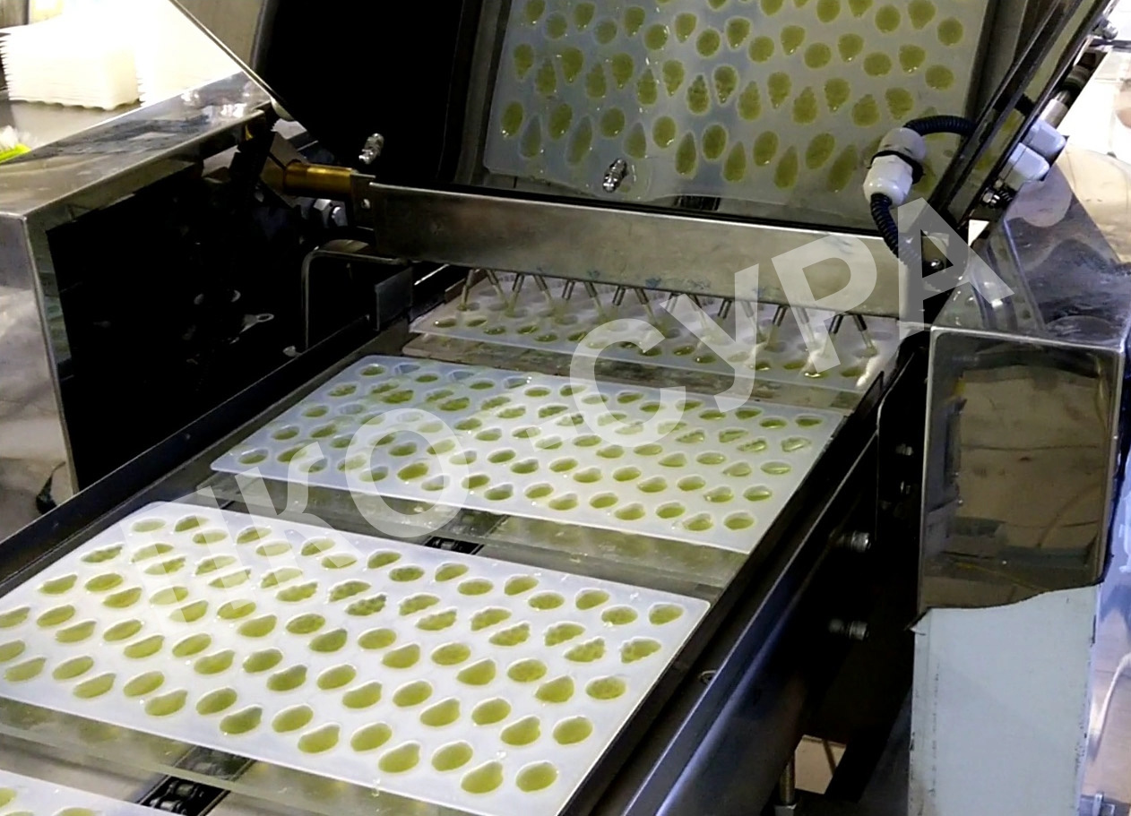 Отливочная машина Сура ОМ и зефироотсадочная Сура ЗОМ — это оборудование для отливки мармеладной массы в силиконовые коврики и отсадки изделий из зефира на приемные лотки.