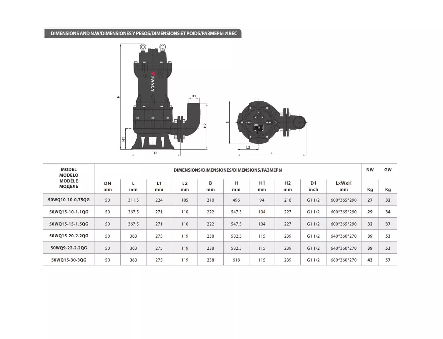 Канализационный насос Fancy 50WQ10-10-0.75QG - Продам в Перми