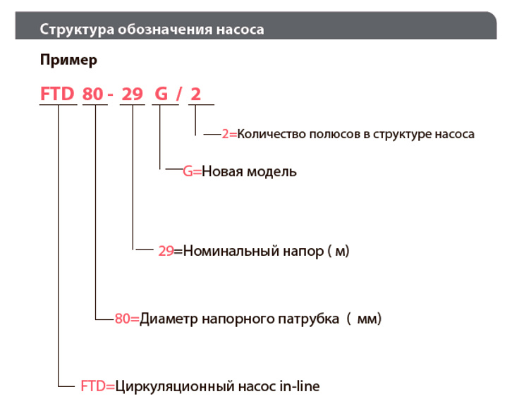 Насосы серии FTD относятся к одноступенчатым рядным циркуляционным центробежным агрегатам одностороннего всасывания с соосным размещением патрубков «in-line». Используются для перекачивания и перемешивания холодных и горячих жидкостей (жидкость должна быть чистой, невоспламеняющейся и не взрывоопасной, а также не должна содержать крупные твердые частицы). Конструкция насоса с «сухим» ротором делает его менее чувствительным к включениям в перекачиваемой жидкости по сравнению с подобными насосами с «мокрым ротором».