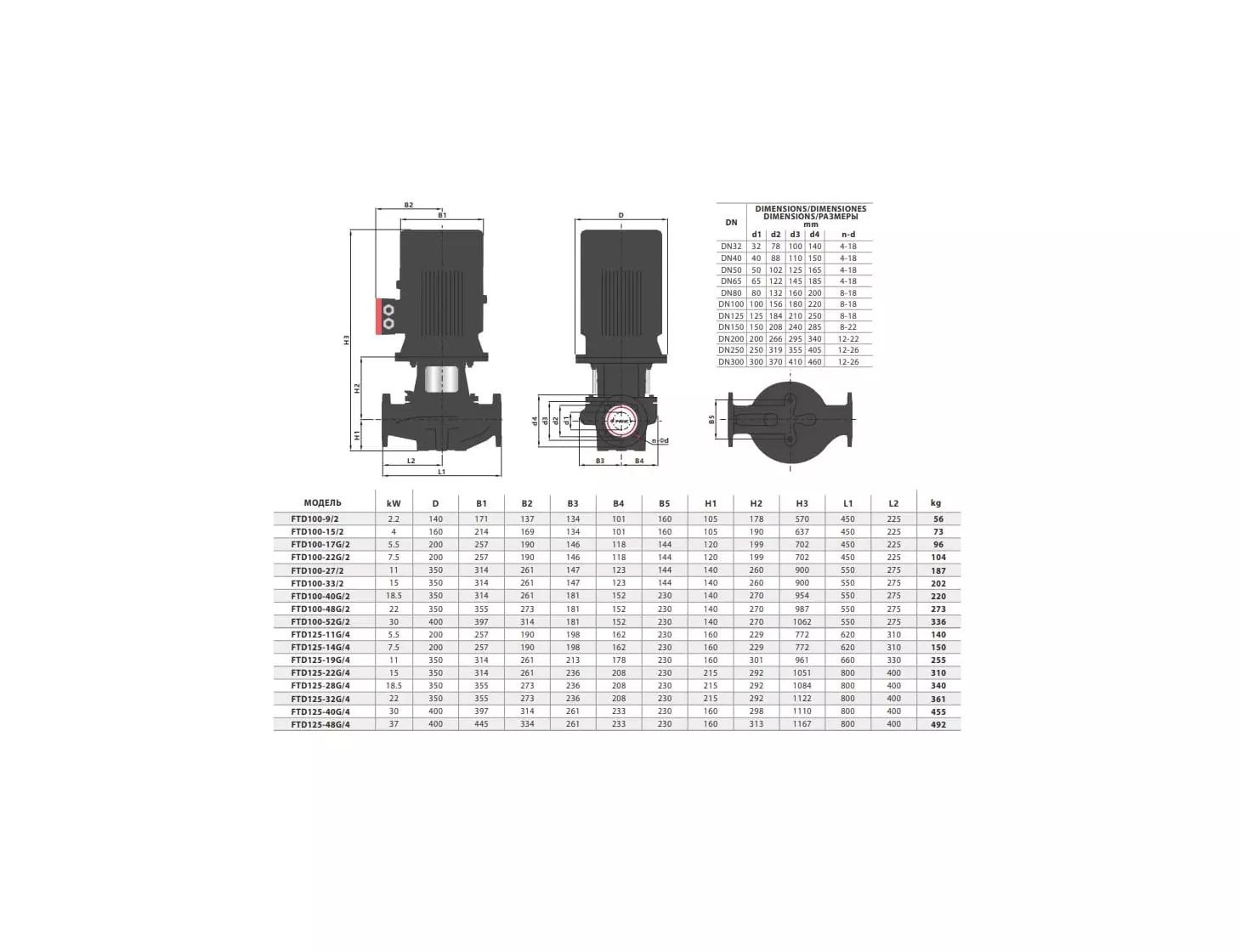 Насосы серии FTD относятся к одноступенчатым рядным циркуляционным центробежным агрегатам одностороннего всасывания с соосным размещением патрубков «in-line». Используются для перекачивания и перемешивания холодных и горячих жидкостей (жидкость должна быть чистой, невоспламеняющейся и не взрывоопасной, а также не должна содержать крупные твердые частицы). Конструкция насоса с «сухим» ротором делает его менее чувствительным к включениям в перекачиваемой жидкости по сравнению с подобными насосами с «мокрым ротором».