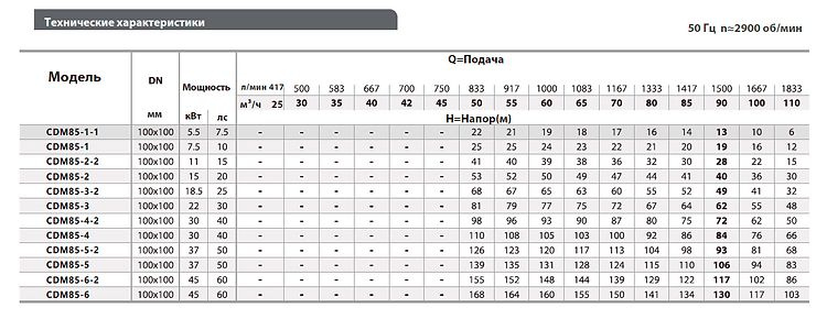 Насосы серии CDM/CDMF - вертикальные, многоступенчатые, центробежные, повысительные, оснащены двигателем YE3. Входной и выходной патрубки находятся на одной оси. Насосы могут изготавливаться из стали AISI 304, AISI 316 и чугуна.