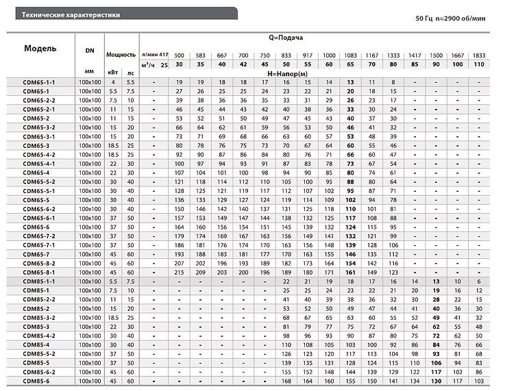Насосы серии CDM/CDMF - вертикальные, многоступенчатые, центробежные, повысительные, оснащены двигателем YE3. Входной и выходной патрубки находятся на одной оси. Насосы могут изготавливаться из стали AISI 304, AISI 316 и чугуна.