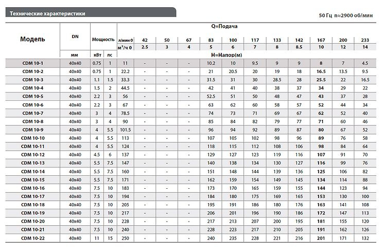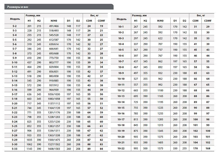 Насосы серии CDM/CDMF - вертикальные, многоступенчатые, центробежные, повысительные, оснащены двигателем YE3. Входной и выходной патрубки находятся на одной оси. Насосы могут изготавливаться из стали AISI 304, AISI 316 и чугуна.