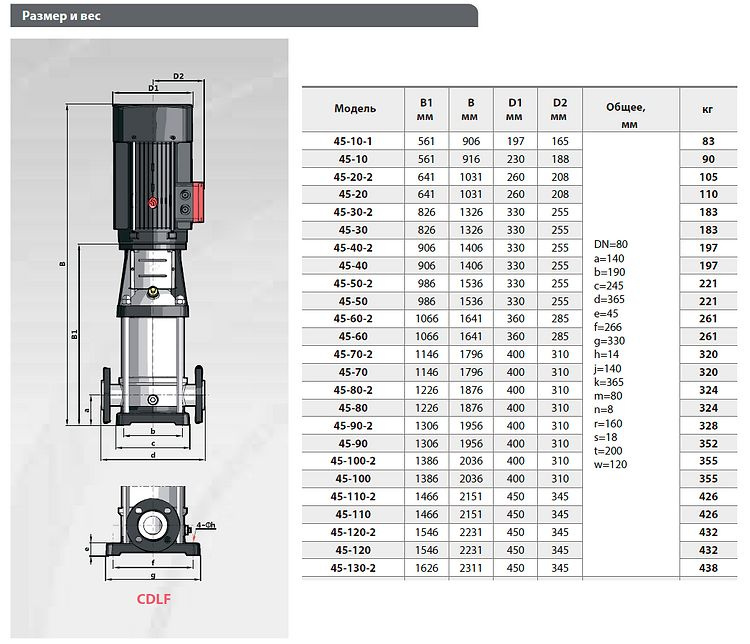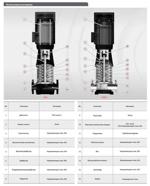 Насосы серии CDL/CDLF - вертикальные, многоступенчатые, центробежные, нормальновсасывающие, оснащены стандартным электродвигателем. Входной и выходной патрубки находятся на одной оси. Насосы могут изготавливаться из стали AISI 304, AISI 316 и чугуна.
