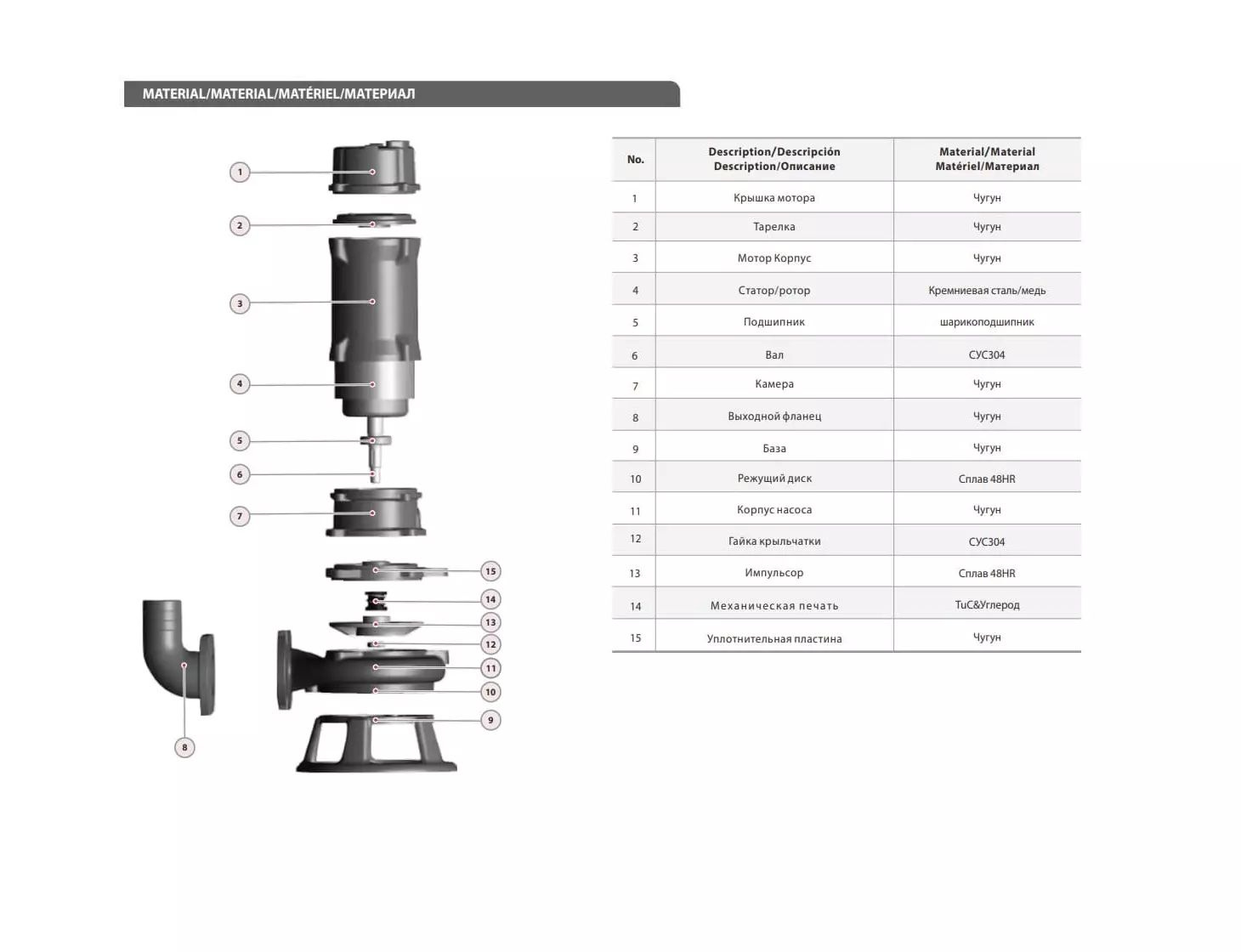 Fancy 150WQV150-15-11 - погружной одноступенчатый канализационный насос с рабочим колесом Vortex, режущим механизмом и фланцевым патрубком DN150. Насос предназначен для откачивания сточных, канализационных вод с содержанием фекалий, длинноволокнистых включений и твердых частиц диаметром до 30мм. Фекальный насос с измельчителем 150WQV150-15-11 используется в жилищно-коммунальном хозяйстве, сельском хозяйстве, строительстве, тяжелой и горной промышленности, ливневых насосных станциях и очистных сооружениях, применяется для дренажа затопленных котлованов, водоотведения из септиков, отстойников и резервуаров со сточными водами, удаление воды из ёмкостей, колодцев, баков и др.