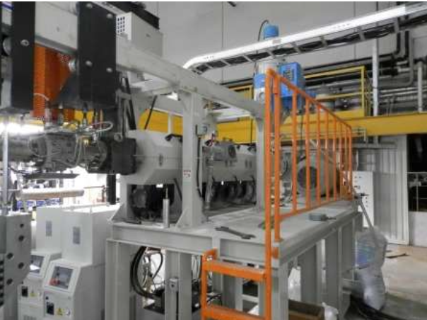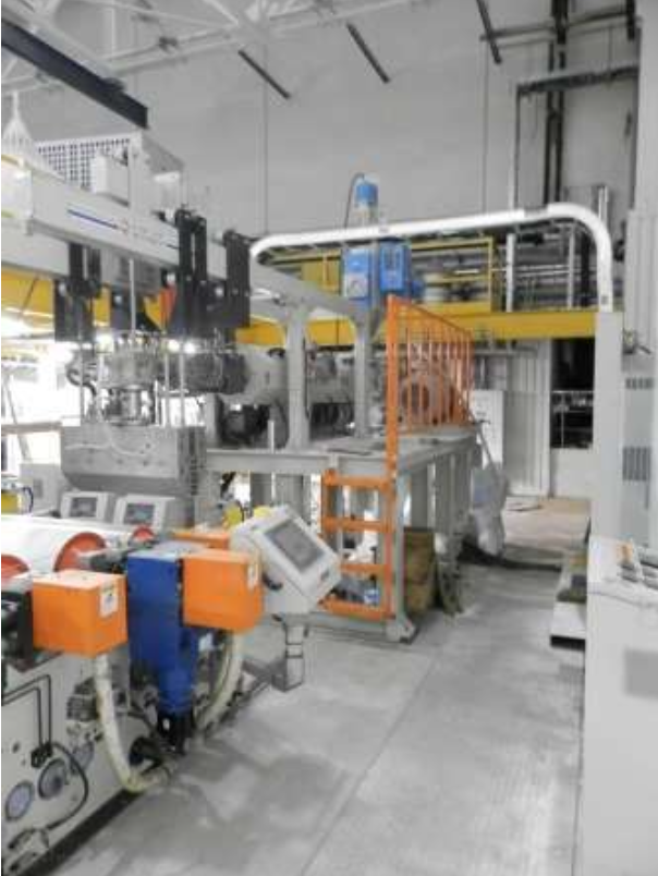 Одношнековый экструдер EMS-95, диаметр шнека 90мм, производительность около 200 кг/ч (в зависимости от размера профиля и материала может варьироваться). Ширина выхода продукции около 127 см. Изначально приобретался для производства рассеивателей всех видов (прозрачных, частично прозрачных) для офисных светодиодных светильников. Установлен в 2012 году, выпустил около 1.500 рассеивателей и с тех пор не используется.