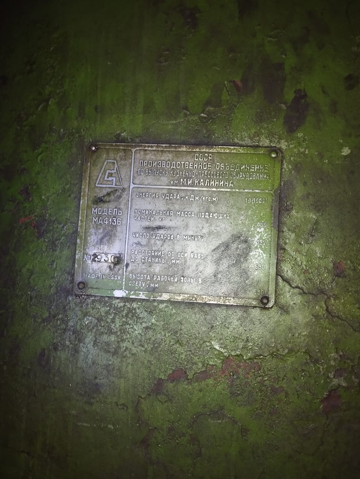 Предприятие реализует молот ковочный МА4136 - номинальный вес падающей части 400кг.