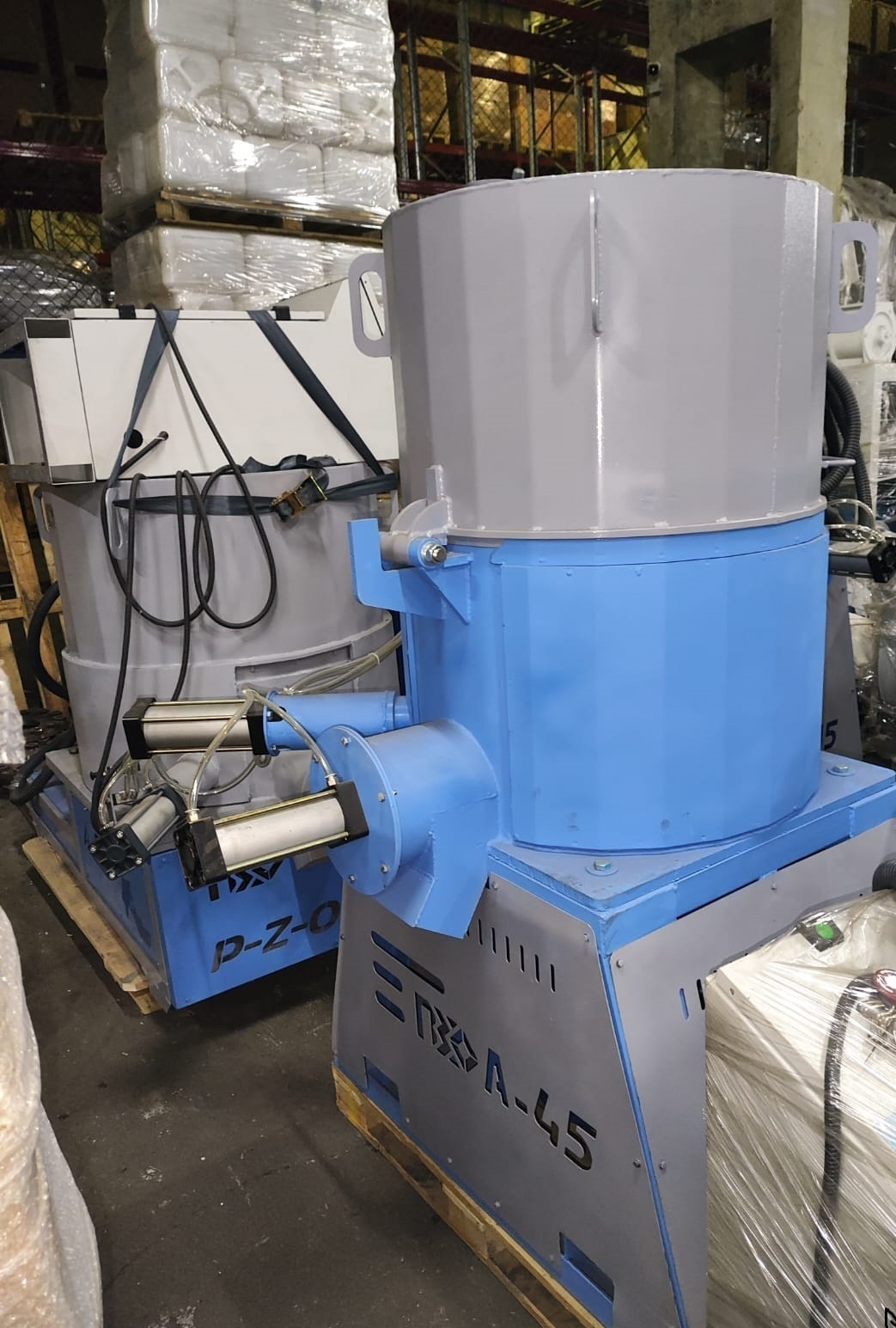 Недорогой агломератор Российского производства. Объем бочки 400 литров, производительность 250 кг/час и мощность двигателя 45квт. Агломератор для переработки целлофана, полиэтилена и других видов пленок приобрести можно со склада в Ростове.