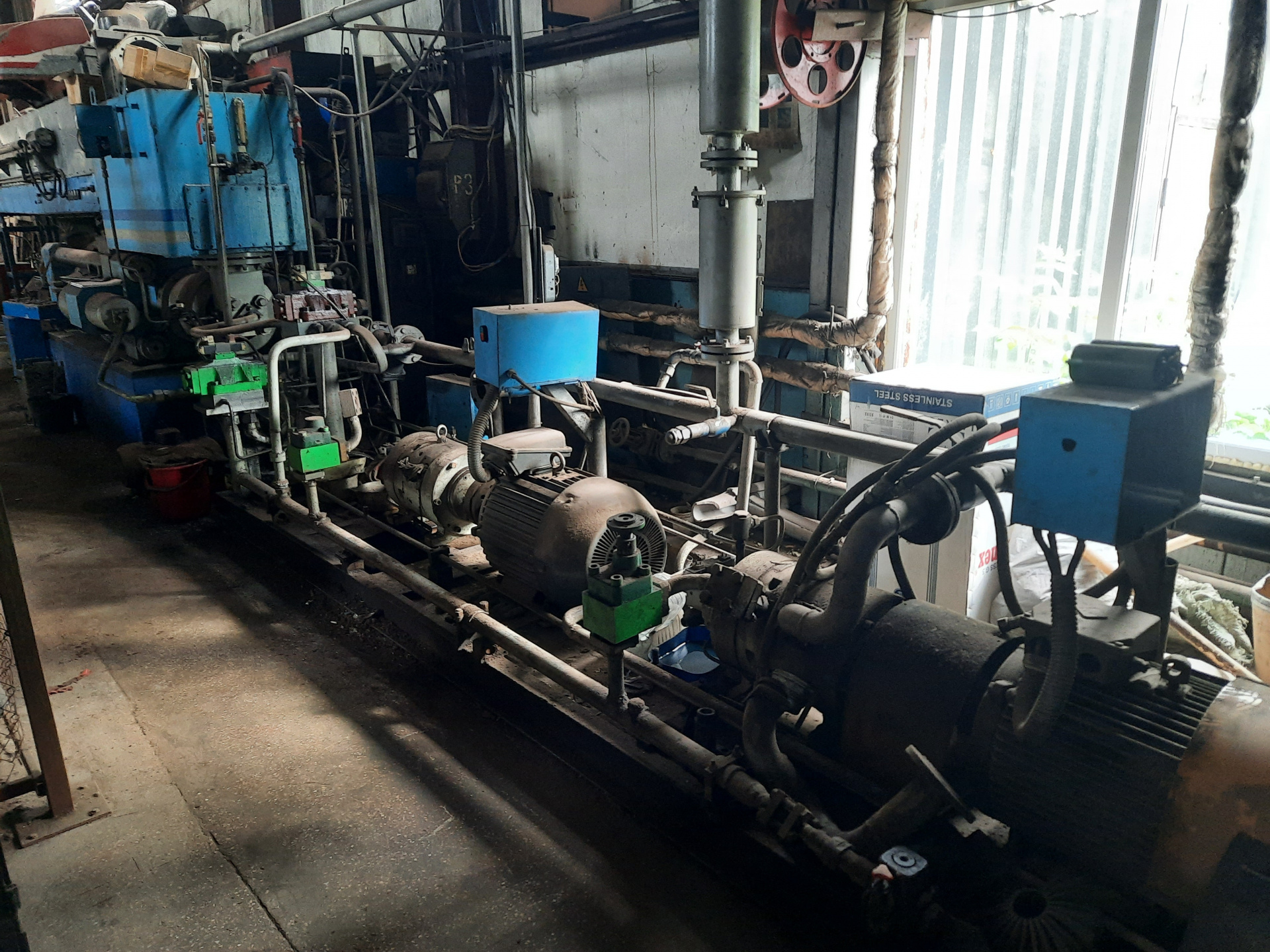 Пресс гидравлический горизонтальный усилием 200тн. Изготовлен для производства алюминиевого профиля. Рабочий ход 650мм. Насосная станция - 2 насоса НАМ 74М .220/32